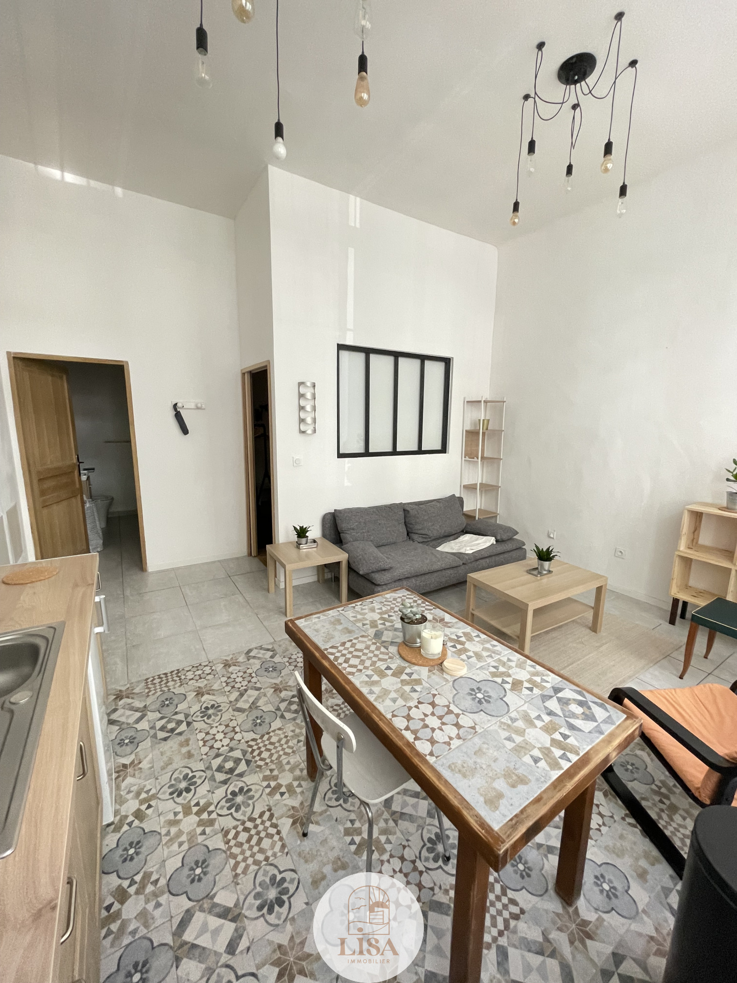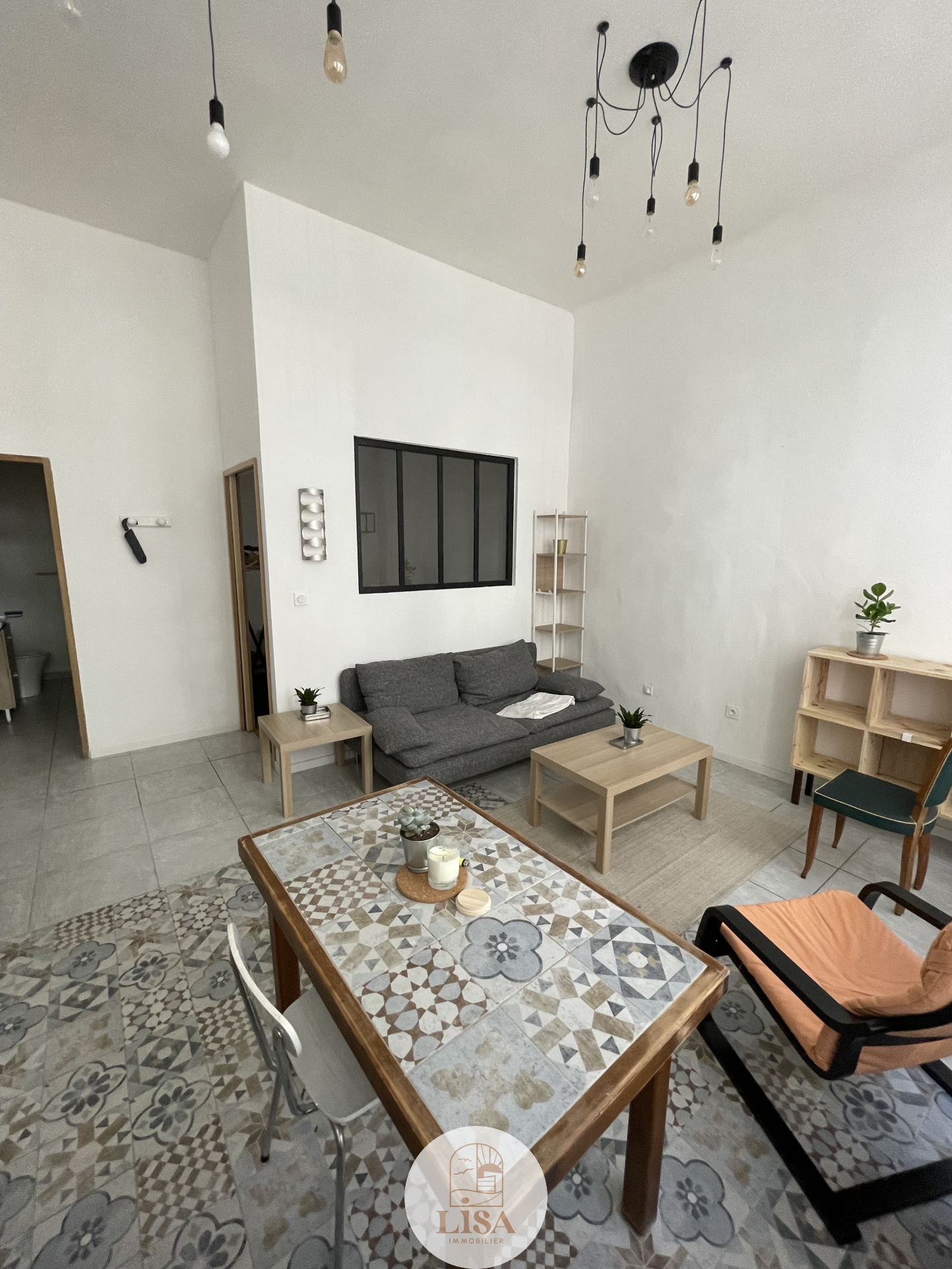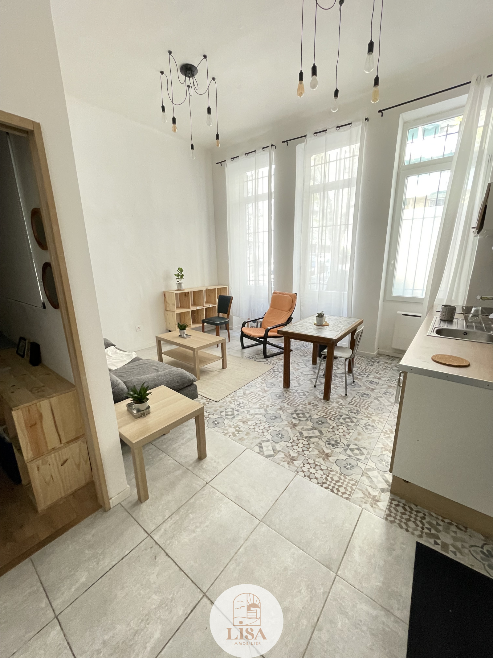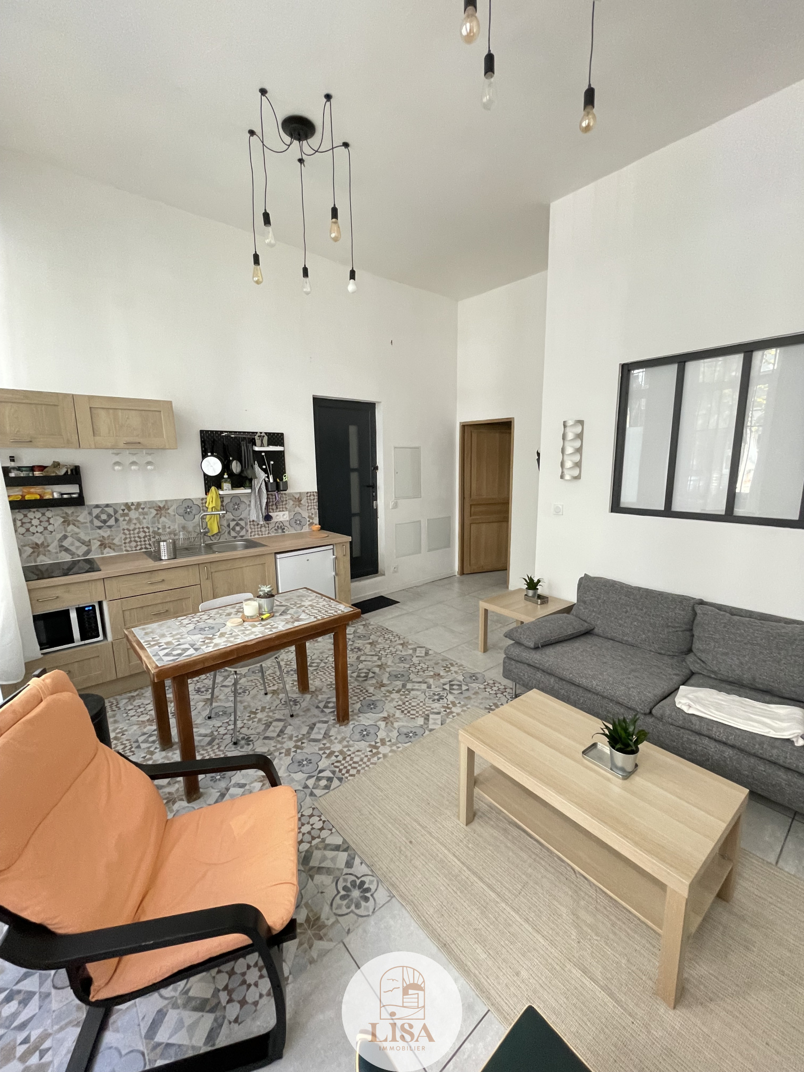 AU RDC d'un petit immeuble , T2 MEUBLE DE 36 m² entièrement équipée et aménagé, (canapé, réfrigérateur, machine à laver, séche linge, plaque de cuisson, table avec chaises, lit...), séjour ouvert sur la cuisine, Chambre ajourée sur le salon, salle de bain avec wc.....