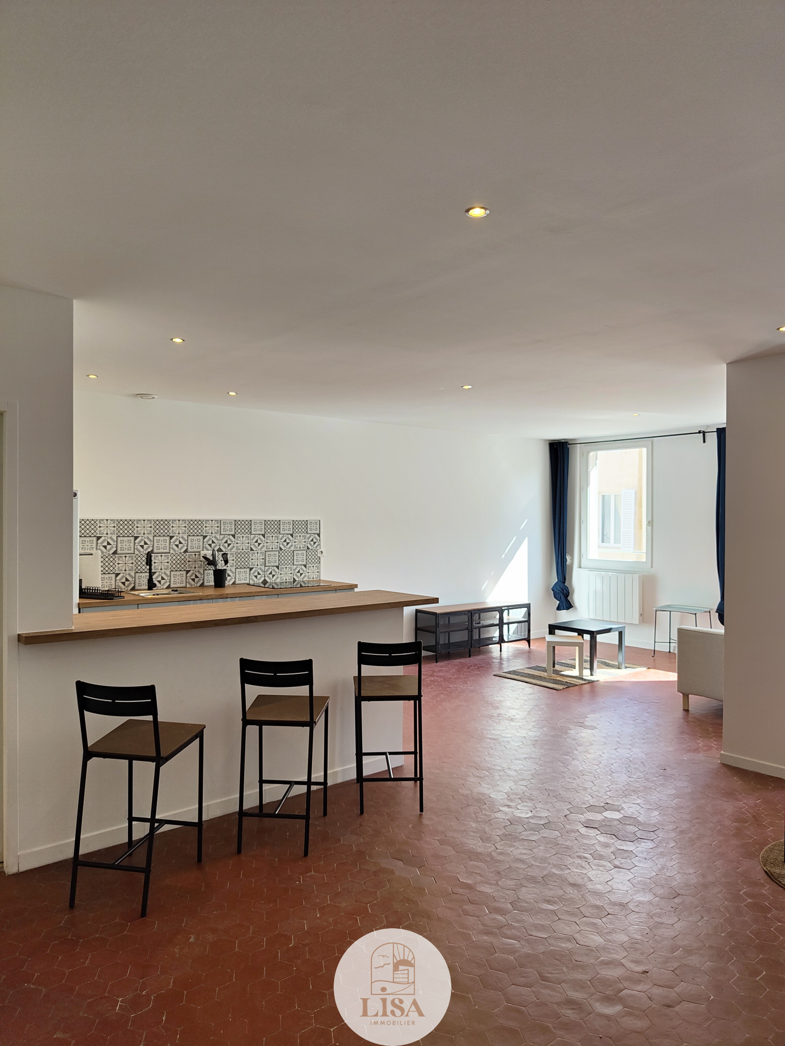 LISA IMMOBILIER vous propose à la location ce magnifique type 2 entièrement meublé de 62 m2 au 4éme et dernier étage sans ascenseur d'un petit immeuble marseillais.
